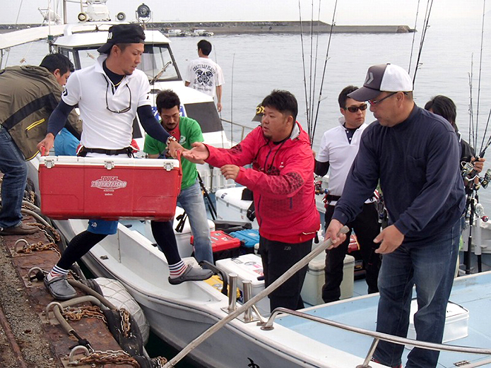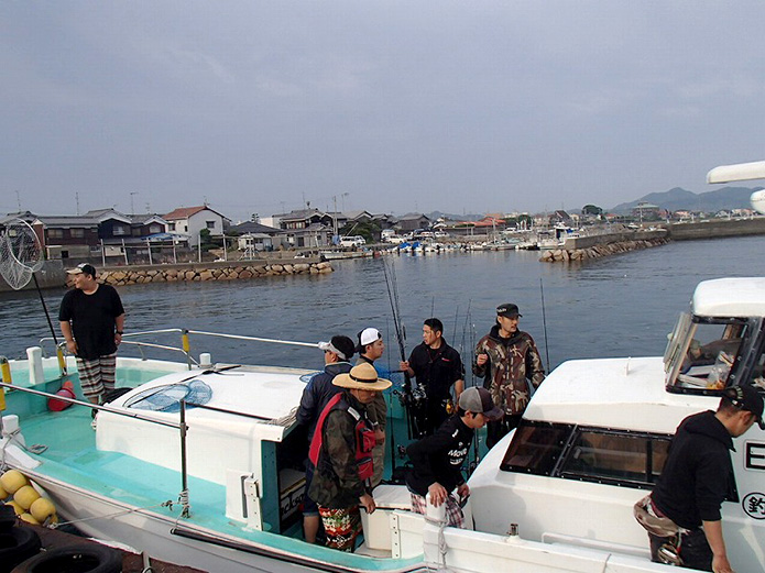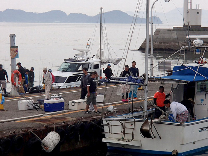 ▲ 朝早くから出船場所の松山市堀江港には熱きジギンガー達が大集合です! |