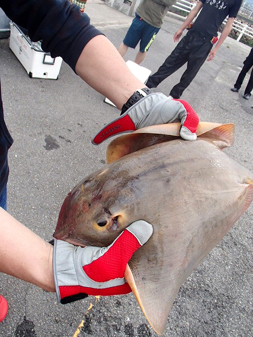 ▲ ジギングってエイまで釣れちゃうんですね。 |