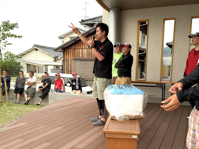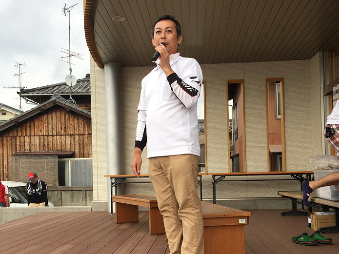 ▲ いよいよ表彰式です!MCはDAIWAでおなじみのグローブライドの上田さんにお願いしました! 相変わらずのテンションの高さは健在ですっ! |